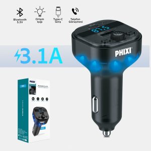 Phixi FM15 Hızlı Şarj Destekli Bluetooht 5.3 Araç Kiti - FM Transmitter