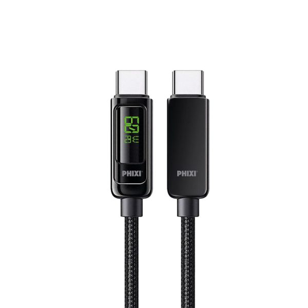 Phixi Ultimate UPD4160T 60W LCD Ekranlı Metal Başlıklı Hasır Örgü Type-C to Type-C Hızlı Şarj ve Data Kablo