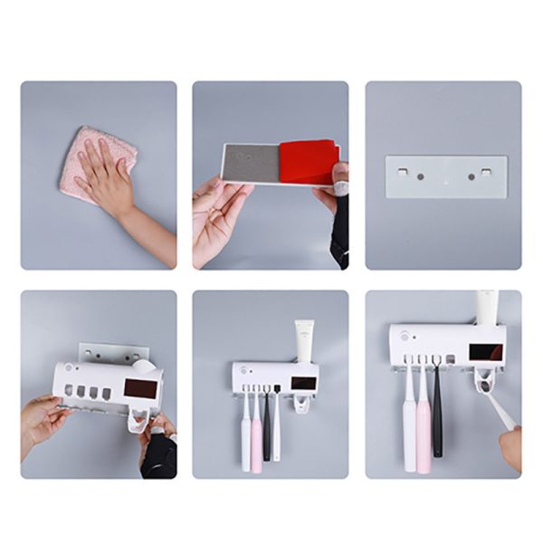 -Kolay Kurulum: Duvara monte UV diş fırçası sterilizatör tutucusu, çift taraflı yapışkan bant ile duvara takılması kolaydır.
