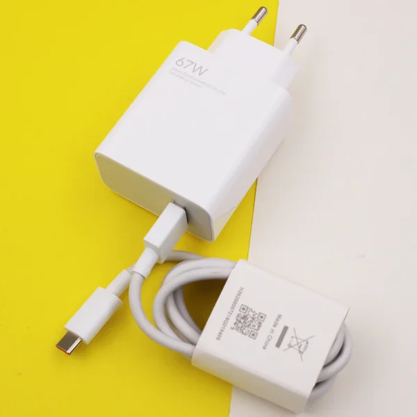 Huawei Samsung ile Uyumlu Akıllı Telefon Dizüstü Bilgisayarı için Tek USBA Bağlantı Noktası Güç Adaptörü Şarj Bloğu ile Xiaomi 67W Hızlı Şarj Cihazı ve 5A USB Tip C Şarj Kablosu Seti Duvar Şarj Cihazı