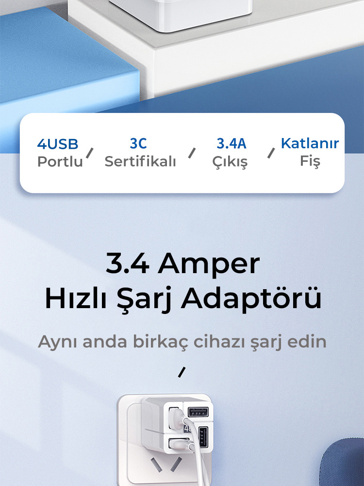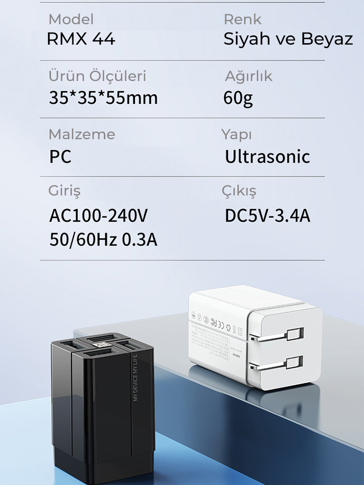 Zuidid RMX 44 100W 3.4A 4 USB Portlu Hızlı Şarj Adaptörü