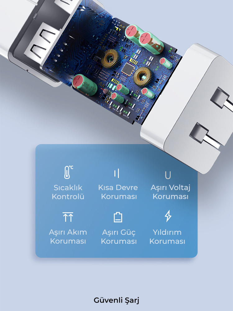 Auris ARS-CH65 65W 2 PD + 1 USB Çıkışlı Ultra Hızlı Şarj Cihazı + PD Kablo